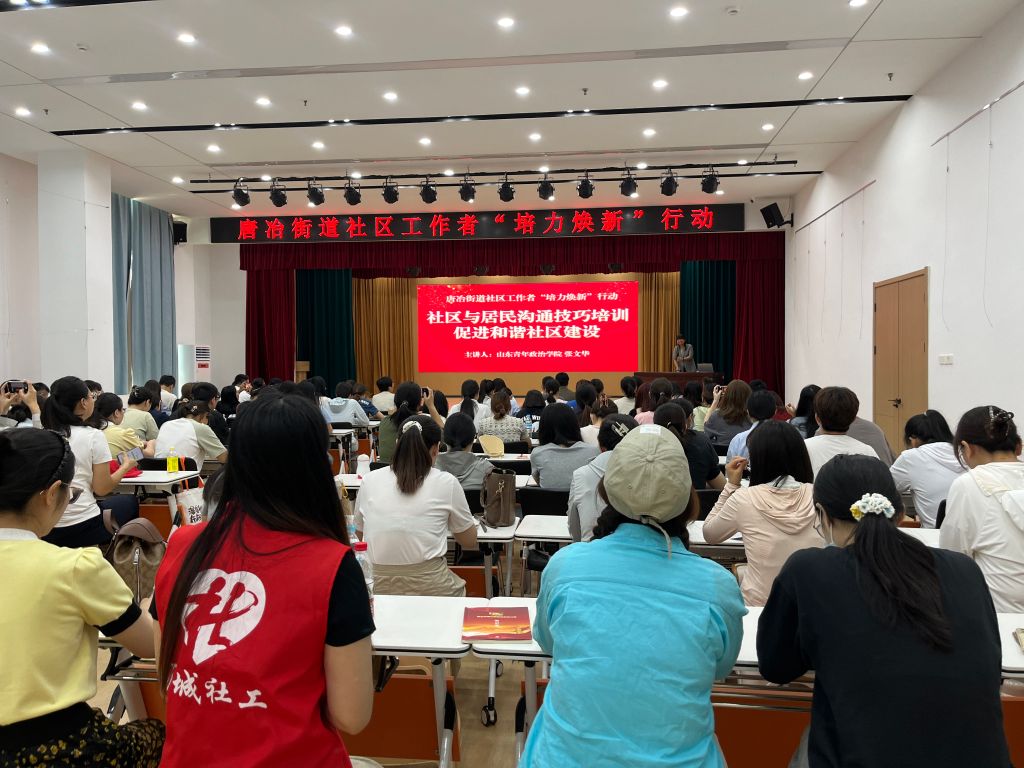 社区是老百姓赖以栖居的家园,需要环境优美、邻里和谐、管理规范。沟通则是人与人之间、人与群体之间思想与感情的传递和反馈的过程,以求思想达成一致和感情的通畅。为进一步加强建设“有温度”的社区并提升社区工作者的沟通能力。8月29日,唐冶街道社工站联合山东青年政治学院政治与公共管理学院开展了一项旨在促进和谐社区建设的“社区工作者培力焕新行动”。唐冶街道各社区新进专职社区工作者共计110余人参加此次培训。
