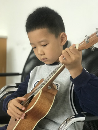 周六上午的音乐类课堂开设有电子钢琴、尤克里里、声乐三门课程。大学生志愿者与孩子们首先进行简单的破冰互动环节,孩子们对老师的陌生感瞬间打破。学习尤克里里的孩子们是从最基础的识谱学起,志愿者们悉心指导孩子们的指法,循序渐进,一节课下来可以弹奏一首简单的小曲。声乐课的孩子们也是从最基础的识谱和发音学起,歌声悠扬,孩子们笑声明朗,整个课堂充满着欢乐和谐的氛围。