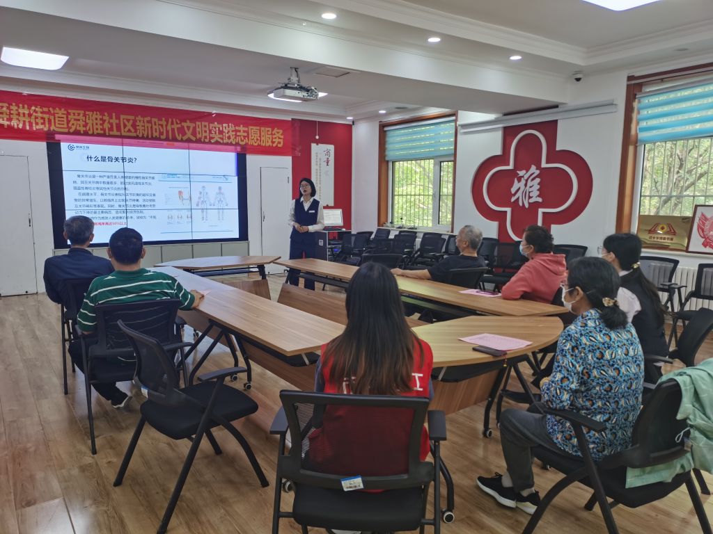 讲座中,讲师重点围绕骨关节病发生的原因、骨关节病的症状以及骨关节病的治疗和预防等知识进行了全面详细地讲解。提醒老人们要科学调整饮食,使骨关节获得丰富的营养,同时多散步,适当增加腿部肌肉力量的锻炼,枕头、床铺等也要合理选择,从而有效防止骨关节疾病的发生。医护人员也提醒大家一旦出现关节痛或骨关节炎相关症状,务必到正规医院就诊,切忌滥用抗生素或止痛类药物。