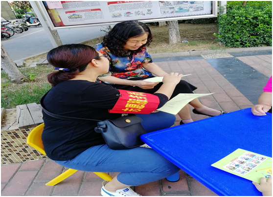 因前期抽查时,凯旋新城社区部分老年人对扫黑除恶专项斗争工作知晓率偏低,针对这一问题,项目组专业社工与专职网格员决定依托每天的社区读书堂活动,向看孩子的老年人再宣传、再讲解。上午九点,社区家长们携带孩子如约来到活动广场参加亲子读书堂活动,项目组社工与专职网格员向看孩子的老人们发放扫黑除恶专项斗争宣传品,并向他们仔细讲解12类黑恶势力,进一步推进社区扫黑除恶专项斗争,夯实项目组协助社区进行的扫黑除恶专项斗争工作成果,在社区营造“黑恶必除,除恶务尽”的浓厚氛围,营造安全、稳定的社区环境。