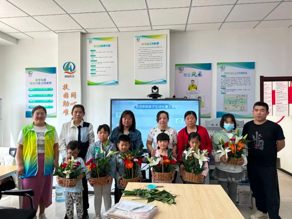 【童彩乐园】“以花为礼,感恩有你”——崔寨街道社工站开展母亲节亲子插花小组活动
