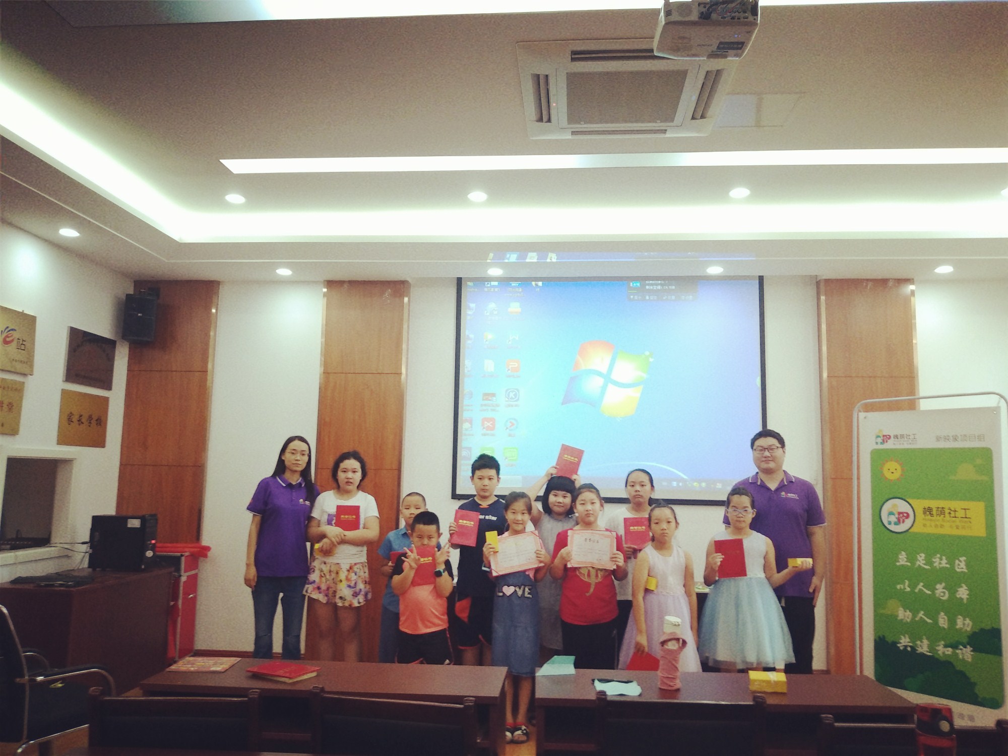 2018年8月17日上午,新世界阳光花园社区青少年多元成长营(第五期)最后一次活动结营仪式在居委会二楼活动室顺利举行。