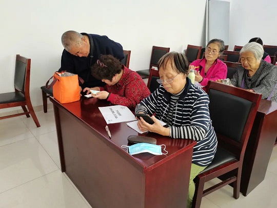 早来晚走是刘阿姨成为志愿者之后的常态,老年群体智能化需求大,“潮生活”智能手机班学员数量多,但是社工的精力有限,在课堂上虽然社工不断重复教学内容,但是依旧会有不能理解的老人需要一对一的教学。在这种情况下,刘阿姨主动联系社工自发成为手机班志愿者。