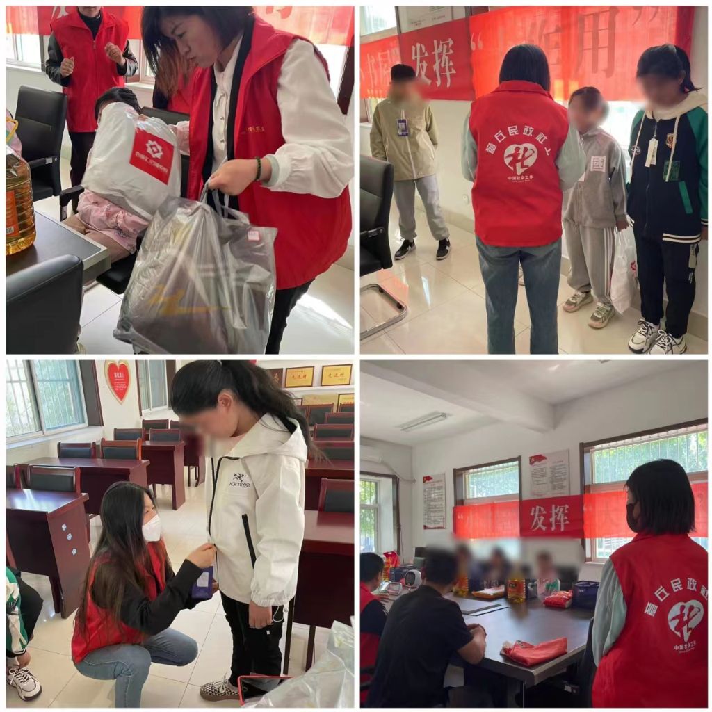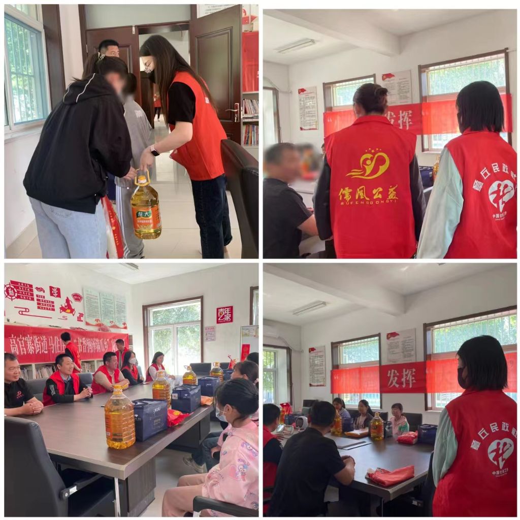 活动前,儒风公益志愿者为高官寨街道每位孤困儿童采购了一身衣服,并为孤困儿童家庭准备了牛奶、面粉、食用油等物质上的关怀。活动中,驻站社工耐心帮儿童试衣服,并与与孤困儿童亲切交谈,认真了解他们的学习情况及身心健康问题,并鼓励他们要勤奋学习,做一个乐观、积极向上的好少年。
