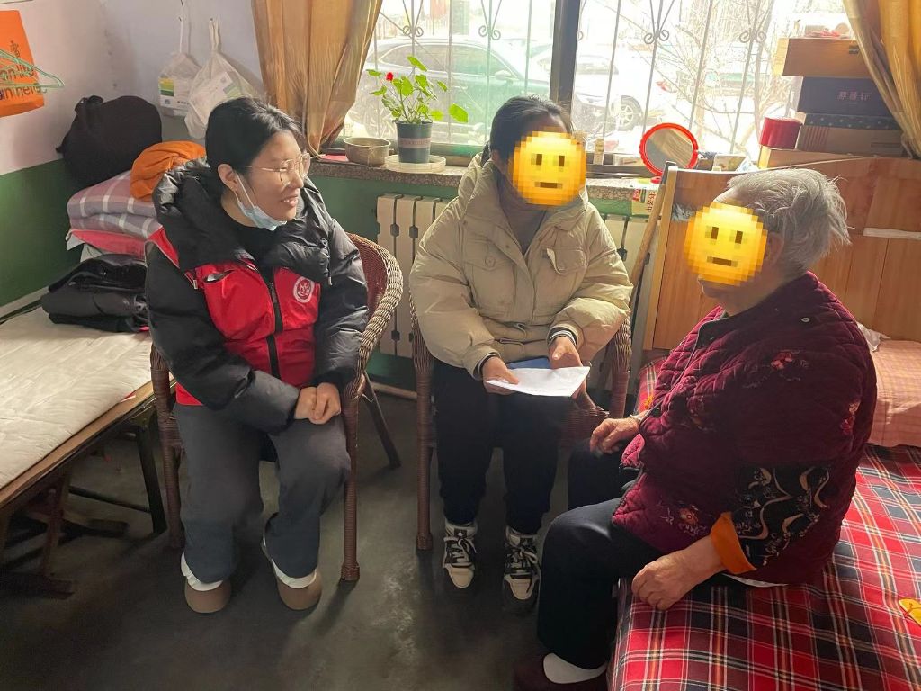 开门迎福。面对社区内无法下床的刘大爷,社工和志愿者一起走进了大爷家中。大爷看见社工后第一句话就是“我这一把年纪了除了儿女还有你们想着我,真的是太感谢了你们了,闺女。”简短的一句话,深深地表达了社工和困境群体的真挚情谊。社工与大爷亲切交谈,认真倾听他的心声,并主动为老人打扫卫生,提醒老人注意身体,并约定好明年开春再来看望刘大爷。送福进家门,不仅仅是进入寻常百姓家,更重要的是进入困境群体的家,一副“福”字链接的不仅仅是新春的美好祝愿,更是关怀弱势群体的有力环节。