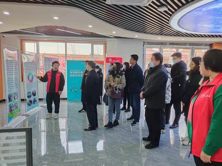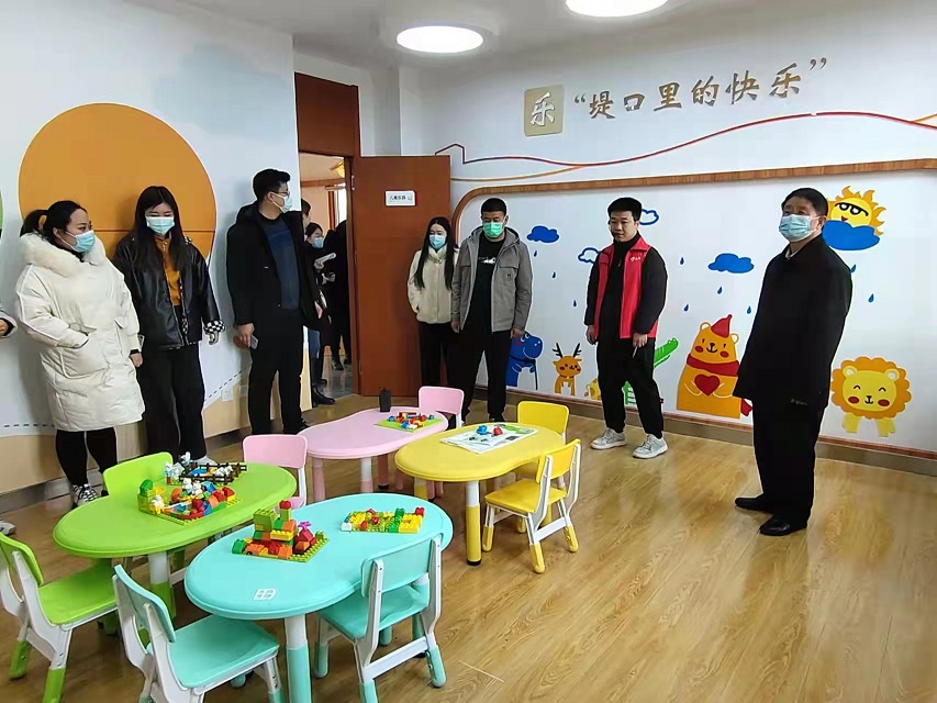 为搭建良好的社工站交流平台,助力社工站建设与服务品质提升,2022年2月17日,钢城区党组成员刘继平带领街道民政负责人及各街道社工站站长一行17人来天桥区堤口路街道社工站实地观摩与交流。