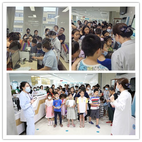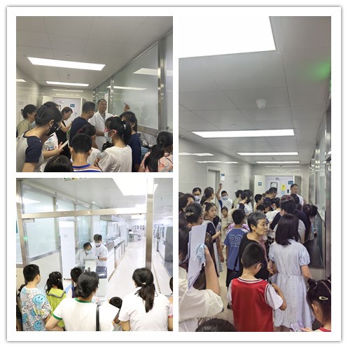 在参观体验的环节,首先来到检验科,孩子们与机器人进行了互动,并且在庄学伟主任的讲解下,进一步了解各种精密检验设备的功能。孩子们不断提出各种问题,惊叹于医疗技术的先进,进一步拓展了医疗知识领域。在健康管理科,在护士长王娅囡和护士李小爽的带领下,大家零距离观摩了采血区、大型仪器设备区;健康管理科的工作人员为每个孩子测量了身高和体重,提出了健康指导意见。