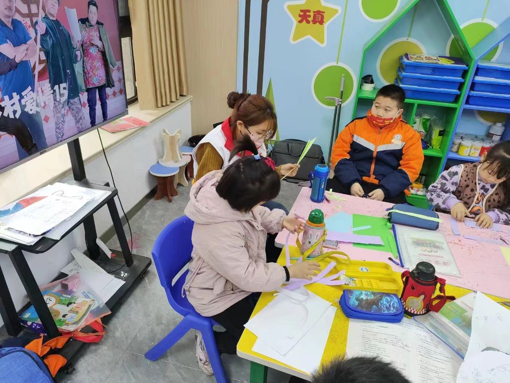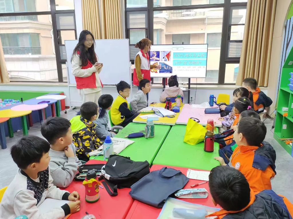 活动伊始,大学生志愿者组织参与活动的儿童进行签到,为进一步促进活动目标的实现,社工与儿童共同签订了小组契约,约定有序、开放、主动地参与小组活动,小朋友们对此次活动表现出了很高的热情。随后,志愿者们带领儿童一起开展猜龙图案、纸折龙形等活动,教室中不时传出小朋友的惊呼声。“老师,我知道,我知道,我在电视剧里那个皇帝的衣服上见过,就是龙袍......”,“龙好酷啊,我们可是龙的传人,太棒了”。在社工和志愿者老师的帮助和指导下,15名小组成员都顺利地完成了龙形折纸,社工在活动中还积极关注儿童的情绪状态,询问了他们近期的生活和学习需求,了解儿童的服务需求。