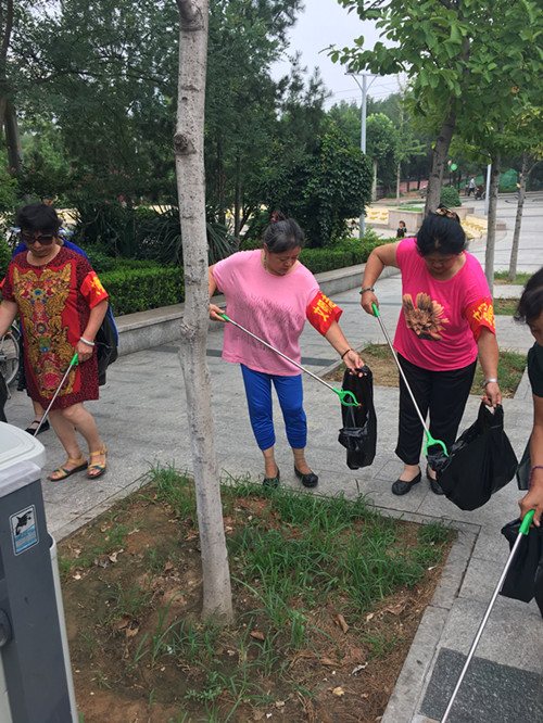 炎炎烈日挡不住社工与老年志愿者参与创城的积极性,活动期间每天上午9点老年志愿者们准时来到英雄山广场,大家都发扬不怕脏,不怕累的精神,个个手拿夹子、垃圾袋等工具捡拾地上的塑料袋、碎纸屑、烟头等白色垃圾。经过每天一个多小时的努力,园区道路上的垃圾全部被清理干净。