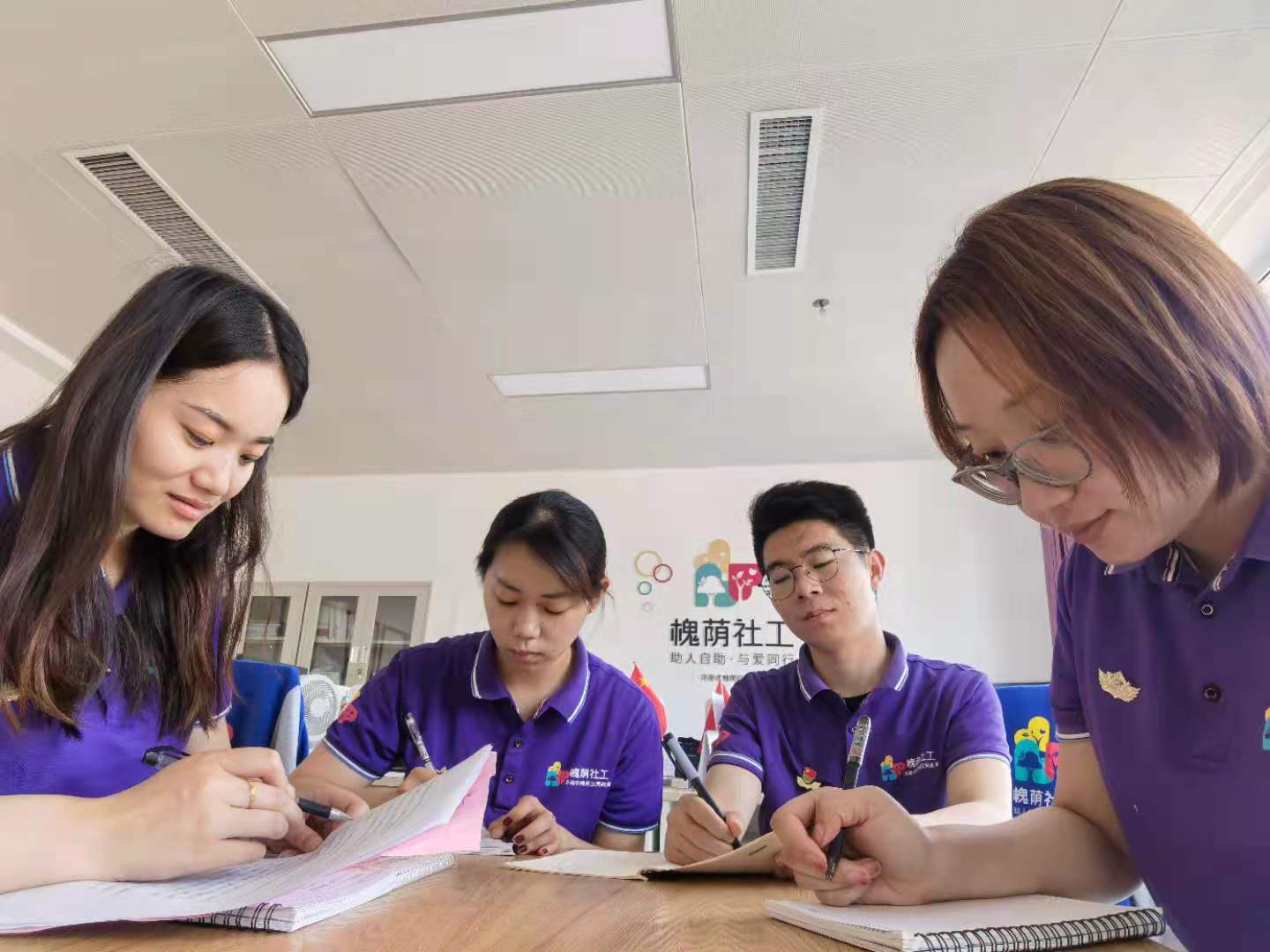 振兴街街道社工站的6月是忙碌的,换新后的不适感和工作带来的焦虑感充斥着每个社工的内心,工作间隙的嬉闹玩笑成了同辈情感支持最有效的方式,互相治愈和共同成长是大家在这段时间里心照不宣的默契。
