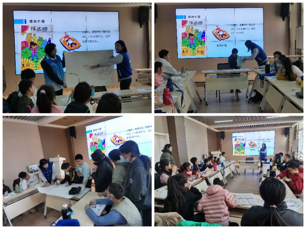 开营仪式前,街道社工站引导青少年规范签到并介绍本期冬令营活动安排,使组员们熟知详细计划,做好时间管理。随后在活动第一环节:街道社工站社工及社区工作人员就开营仪式版块设置引导青少年积极参与其中,现场面对彼此陌生的脸庞,组员们丝毫没有距离感,七嘴八舌好不热闹。在自我介绍开始前,社工首先引导组员们“手绘我的社区”,然后提醒大家:“绘画结束后,除了要做自我介绍,还要说出自己小区内有什么显著的特征,经常在小区哪里玩,自我介绍以后还要记住别人的介绍,同时介绍完后,会随时要点名回答问题,点到某位同学后,要向全体同学介绍其中一人及他做的介绍。”现场瞬间安静,组员们带着问题,按照社工的引导认真的绘画。绘画结束社区工作人员及社工以示范个人自我介绍的方式,引导青少年逐一介绍,使青少年们互相认识,让现场每位同学都融入这个陌生的环境。