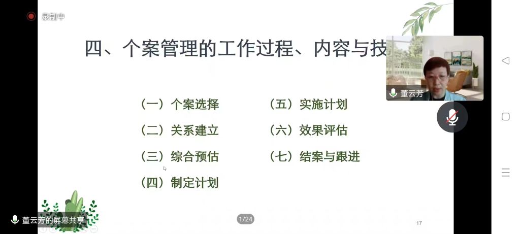 随着疫情放开,社会面阳性病例越来越多,社工站的工作或多或少会受到影响,我个人认为,这正是沉下心来进行修炼提升的机会。昨天有幸参加了董云芳老师的线上培训课,董老师的谆谆教导、细致的讲解,让我重新认识了个案管理的重要性。