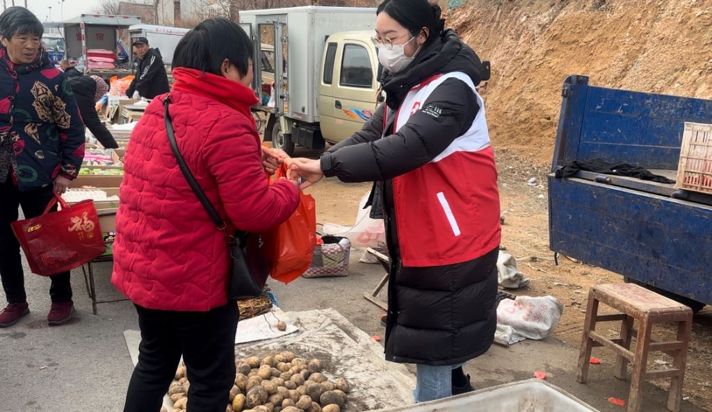 后期社工通过分发宣传单页的方式,在集市上广泛的向村民普及了爱耳护耳小知识,在听力义诊开展过程中,社工了解到徐爷爷家中种植了许多土豆,但是销售一直不好,搁置时间过长容易变质。在沟通后,社工联合社区志愿者,有具体分工的在大集上帮助徐爷爷兜售土豆,社工和志愿者向往来的村民宣传土豆的优点,来采购的居民络绎不绝,招揽着村民的同时接机向村民宣传社工,徐爷爷说:“多亏了你们来给我帮忙啊,帮我卖、帮我称,真是解决了我的难题啊。”