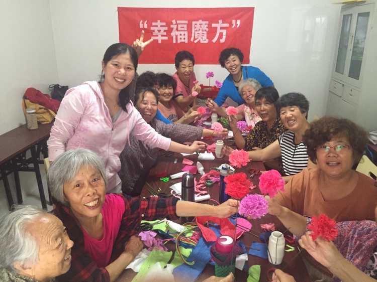 “幸福魔方”项目组第一期纸藤花兴趣小组结束,为让更多空巢老人了解社工的兴趣小组,也为让老人感受中华传统文化,在教师节前夕,社工带领空巢老人一起折纸藤花,策划谢师恩活动。