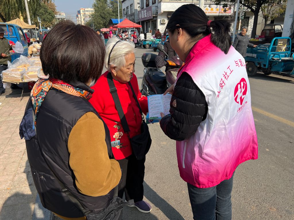在活动现场,社工热情洋溢地走向集市,向路过的村民们发放宣传单。每一张传单都详细介绍了移风易俗的重要性和具体做法,社工们还现场为村民们讲解了传单上的内容,耐心解答村民们的疑问,引导他们正确认识移风易俗的意义。