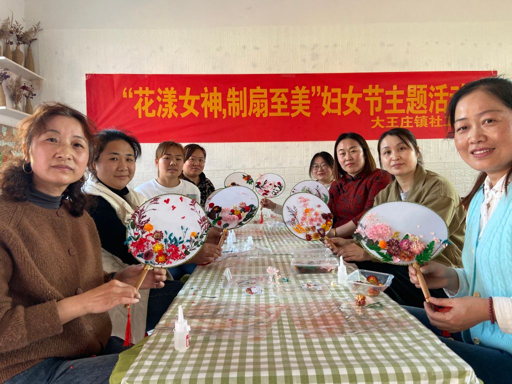 阳春三月,桃李争艳。在这个温暖的日子里我们迎来一个重要的节日——“三八妇女节”。为了活跃节日气氛,丰富农村妇女精神文化生活,构建社会支持网络,3月7日大王庄镇社工站走进复宁街村开展“花漾女神,制扇至美”妇女节DIY团扇主题活动。