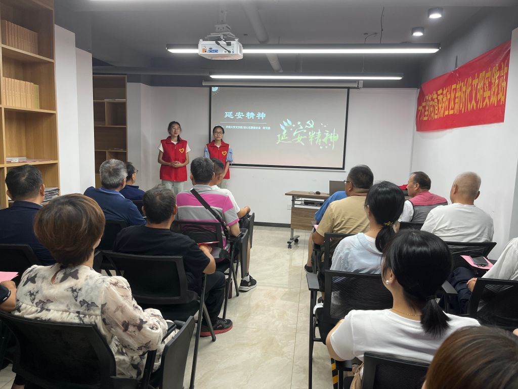 活动现场,志愿者通过精心制作的PPT和生动的讲解,与社区老党员们一起回顾着延安精神的背景、内涵及其在新时代的价值。活动最后,社工鼓励老党员们分享自己对于延安精神的理解与感受,居民们积极发言,现场气氛活跃。一位老党员表示:“延安精神是我们宝贵的精神财富,我们要继承和发扬这种精神,为建设美好社区贡献自己的力量。”