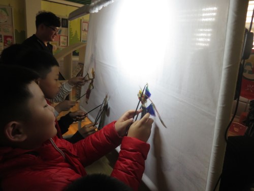 本次活动主要分为三个部分进行,首先志愿者向大家讲解皮影发展史和制作流程,组员们津津有味的听着,使组员对皮影戏这一民间传统艺术有了深度了解;接着《三打白骨精》皮影戏的表演,演员们极富感染力的语调和灵活灵现的表演让组员们深深陷入到《三打白骨精》故事的情景中,从中感受到团队信任的重要意义;最后“体验表演”,由皮影师向组员进行简单的皮影教学,并邀请组员们体验,组员们都积极踊跃举手参加,最终在志愿者协助下,组员与同伴的共同学习和演奏,获得了皮影师的表扬及其他组员们的掌声。