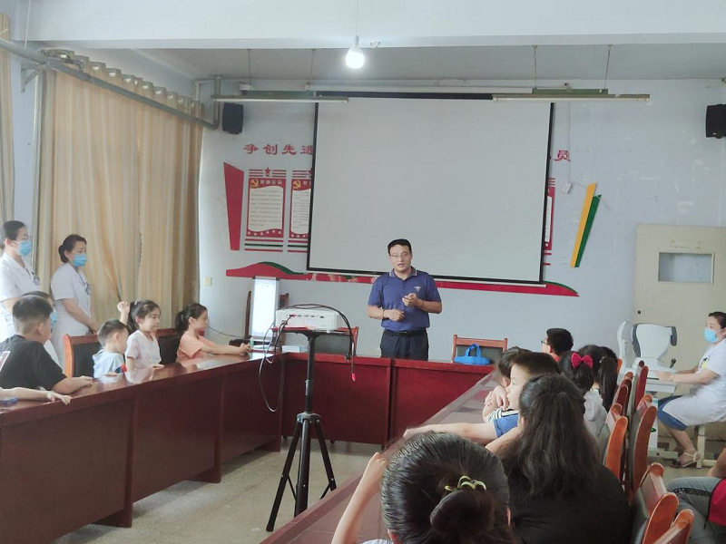 眼科医生先给孩子们讲了三要三不要的护眼方法,一要注意用眼卫生,二要注意眼睛锻炼,坚持做“眼保健操”,三要多吃保护眼睛的食物,补充营养。三不要,一不要在光线暗的环境看书,二不要过度使用电子产品,三不要使用劣质眼睛。另外,医生给孩子们进行客观验光-电脑验光,视力不好的孩子除了近视外,还可能是远视、弱视、散光,并给孩子们的眼睛视力情况建立了档案,方便以后的眼睛健康体检。