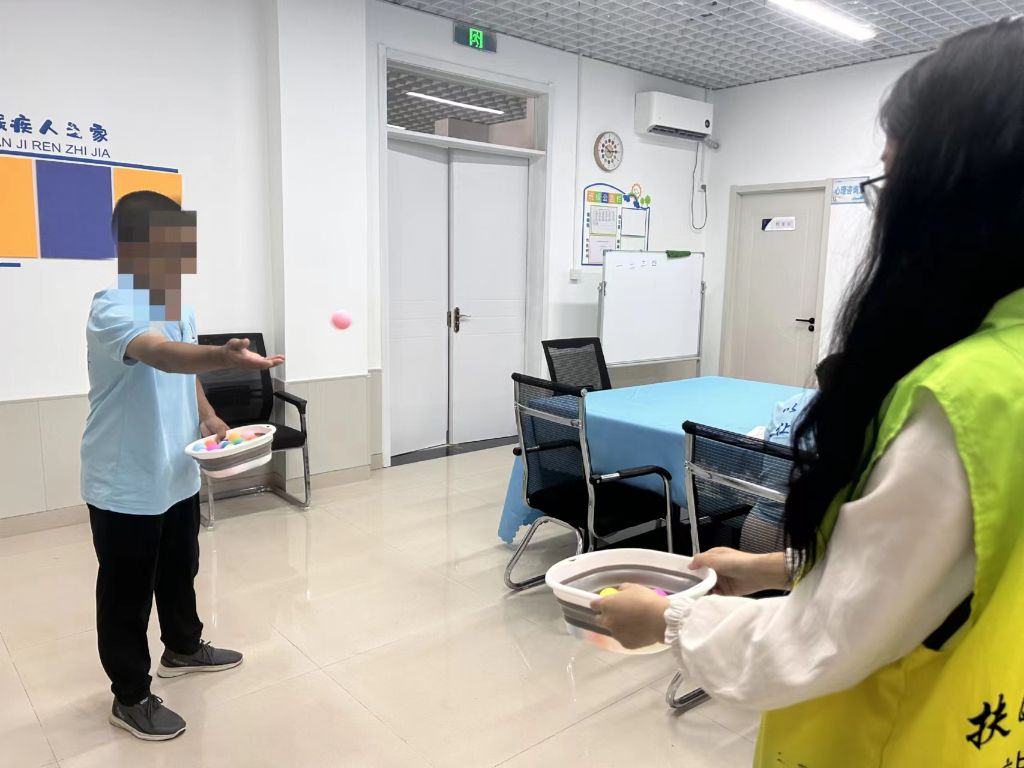 在活动总结环节,社工邀请每位组员分享了参与活动的感受。“我今天很开心,我都没想到自己扔球扔得那么准”一位组员激动地表达着自己的感受。