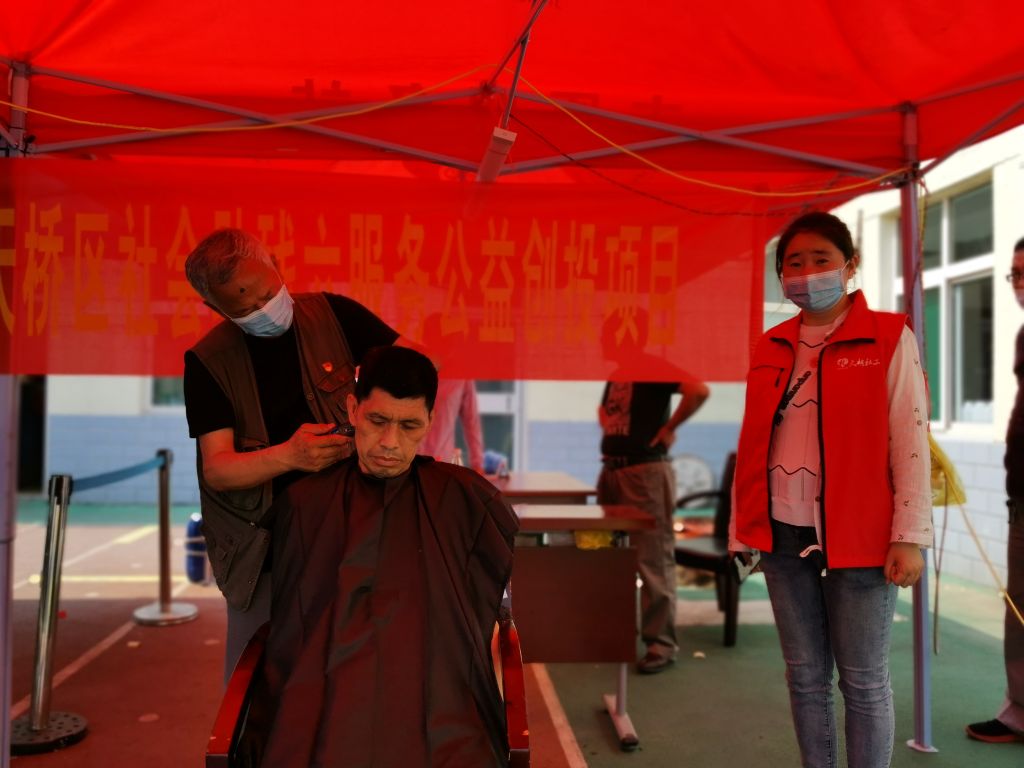 5月24日,天桥东街街道社工站联合两名志愿者组织开展“爱系于发,情系于剪”的爱心义剪活动,活动吸引了辖区多名残疾人前来参与。
