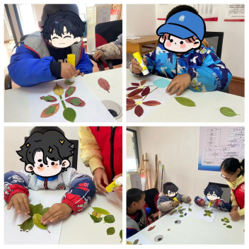 从第一节活动开场白和热身活动后,大家彼此熟悉了很多,在第二节的活动中有说有笑,氛围很融洽,叶贴画创作活动利用常见的树叶作为材料,社工引导组员们根据树叶的不同形状和颜色,通过剪、粘、画等方法,用灵巧的小手粘贴出一幅幅有趣的树叶贴画。活动过程中组员被自己拼出的形状逗的哈哈大笑,不一会游着泳的“小动物”、会吃花的“蝴蝶”、跳舞的“仙人掌”......五颜六色、形态各异的落叶在组员们的巧手里变得灵动有趣。每一幅作品都充满着童趣,凝聚着孩子们的智慧,每一幅叶贴画的背后都是孩子内心最美好的表达。孩子们以童真的视角创作出一幅幅意境非凡的画作。通过本节小组课程既体现出组员对生活的细心观察与无比热爱,也让组员懂得动手操作的成就感,激发组员的创作力。