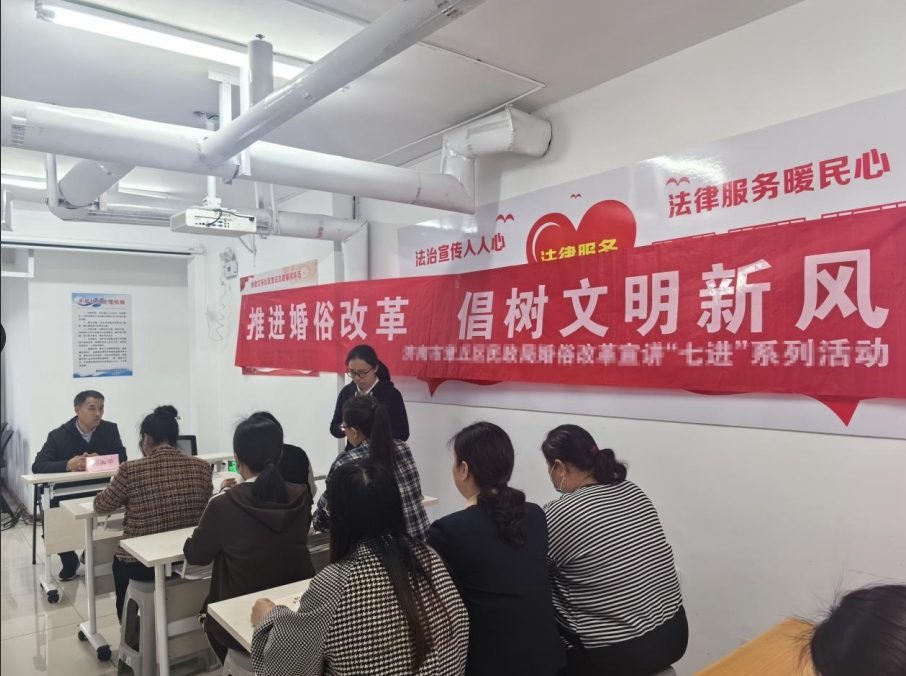 活动特邀山东洞察律师事务所刘律师,为大家深入浅出地解读了民法典中关于婚姻家庭的核心内容。并由章丘区生命树社会工作服务中心国家二级心理咨询师孙老师,与居民就家庭和谐关系处理进行交流互动。最后是章丘区民政局王主任为居民宣讲我区的婚俗改革惠民政策。