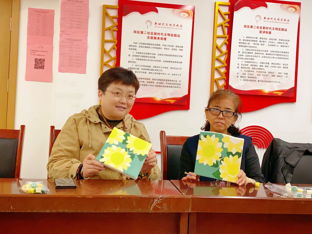 “这种画画方式很有创意,而且视觉效果立体的,非常好看!”高阿姨非常满意自己的作品,细细端详,忍不住和其他组员一起交流心得感受。