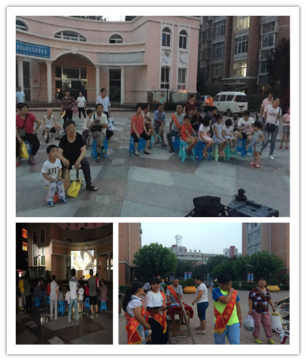 一块幕布、一台投影、一组音响组成了新世界阳光花园社区社区居民的一种节目。入夏以来持续高温,为给辖区居民营造一个乘凉消夏的好去处,也正值七一党的生日来临之际,2016年6月30日晚,槐荫社工项目组联合槐荫区文化局与道德街街道办事处新世界阳光花园居委会联合将露天电影《烽火长城线》搬进了社区。