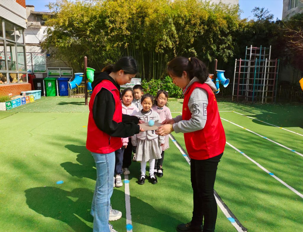4月16日下午,西营街道社工站链接志愿者在西营中心幼儿园开展“团结助发展,一起向未来”第四节成长小组活动。