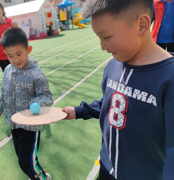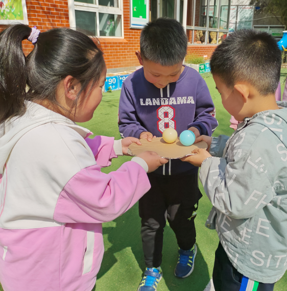活动伊始,社工向儿童介绍了本次活动主题——“十指同心”,了解此次小组活动的目标,让儿童了解本节小组活动游戏规则。其次,由社工和志愿者做游戏演示,儿童认真倾听活动内容、过程,在演示过程中,儿童兴奋不已,迫不及待地想要去尝试。首先,由1人托住圆板保持平衡,将球进行往返接力运送,其次,延伸到2人合力完成,用时最短的一队获胜,在儿童观看其他组运送过程中,大家一同讨论如何快速到达以及保持球不落地的方法,最后,延伸到3人协力完成,让儿童亲身体验到团队的力量。
