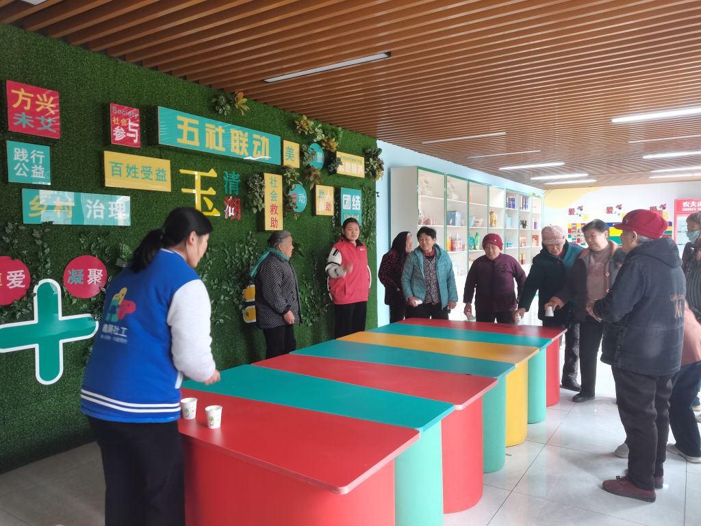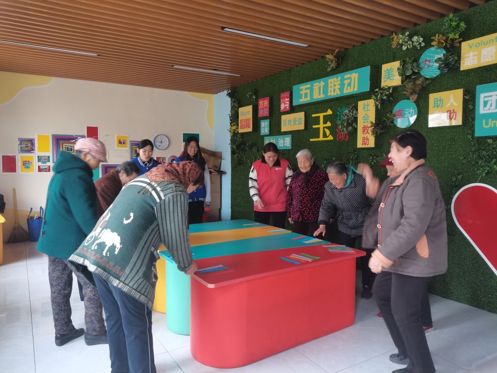 “动起来,乐开怀”乡村老年人游戏兴趣小组第四节活动顺利开展,社工与志愿者带领老年人通过各种趣味小游戏,帮助老人锻炼身体,丰富老人的日常文化生活,扩展老人们的社交网络,促进老年人社会融入。