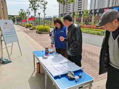活动伊始,社区居民围看红色照片、诉说家国情怀,在交流过程中,社工积极挖掘社区红色人物、党员,聆听他们背后的故事。同时,社工向社区居民介绍吴家堡街道社工站成立的背景、服务内容,大家积极地在留言板上写下需求要点与发展建议。