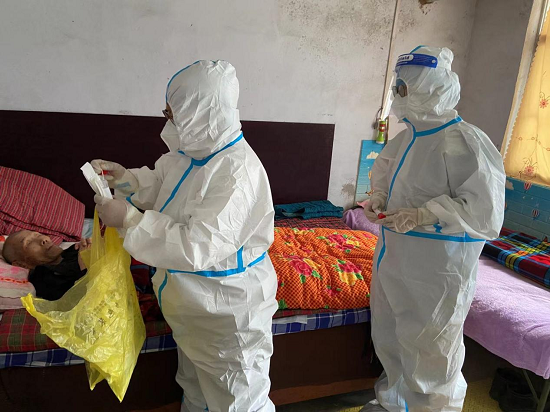 对于行动不便的居民,社工们主动全程陪同入户完成核酸检测