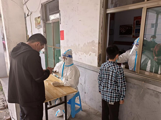 “大家请佩戴好口罩,保持一米线距离。”5月8日,随着一声声耐心的劝导,曹范街道社工开始了章丘区七天四检最后一天核酸检测的采样配合工作。
