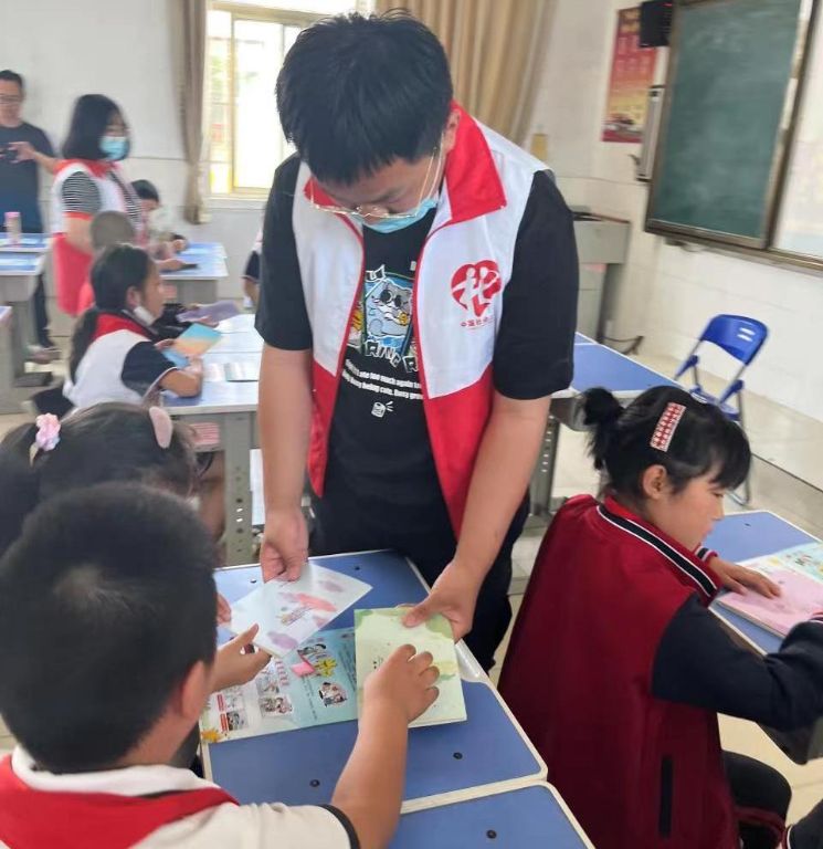 社工为每个小朋友赠送写字本