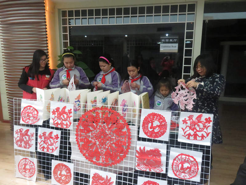 此次传统文化艺术展活动属于“‘会走路的书’系列活动——传统文化季”的前期活动。活动开展前,青少年按照之前的安排,分工协作,完成了场地的布置。十点左右,活动正式开始,小主持人为参与活动的居民介绍本次活动的目的和意义。随后,南辛小学的学生引导居民参观了传统文化艺术作品,赢得了活动参与者的好评。接下来的互动活动,小主持人针对传统文化以及低碳环保知识向活动参与者进行了提问,顺利回答问题的居民赢得了传统文化纪念品,现场热闹非凡。接着,南辛小学的学生与社区老年人一起现场制作了传统文化纪念品,并作为活动奖品送给了活动参与者,为参与者表达了新年祝愿。十一点左右,活动临近尾声,小主持人宣布活动结束。