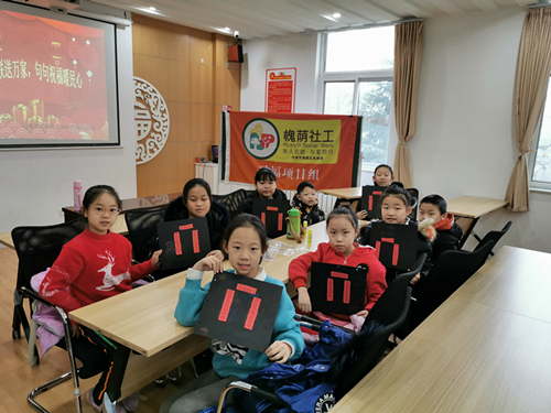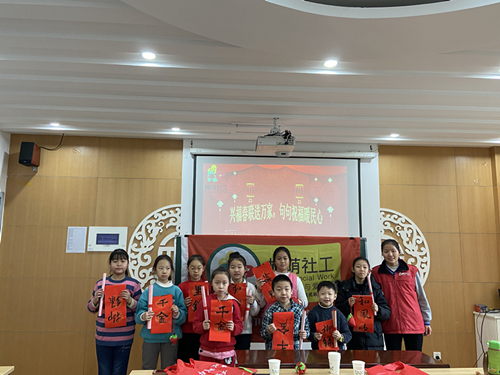 2020年1月17日上午,槐荫民政社工兴福项目组在兴福街道回迁社区与青少年组员们开展冬令营“幸福来敲门,入户送春联”主题活动,本次活动共有9名青少年参加,赠送的春联均由槐荫区书法家协会和槐荫民政社工兴福项目组老年书法小组提供。