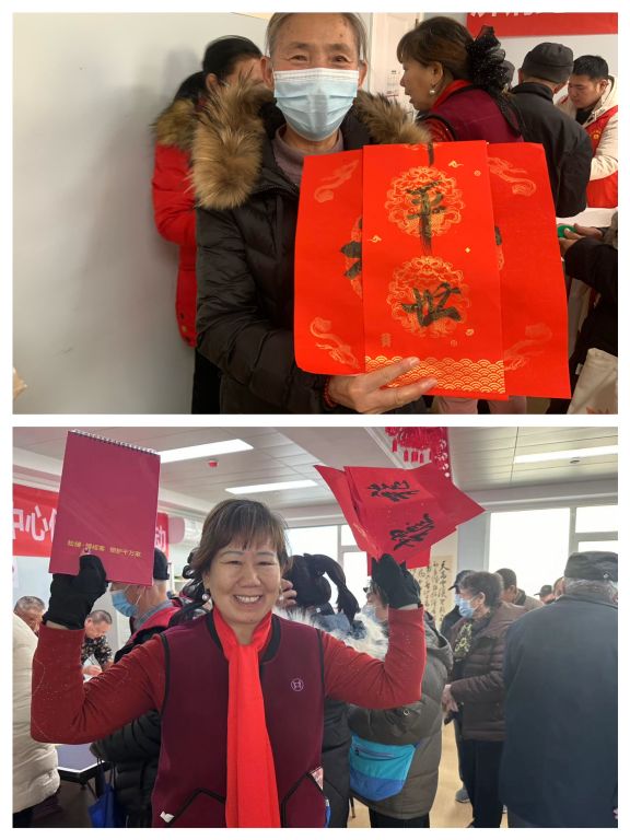 居民们拿着自己喜欢的对联,纷纷表示"这春联还得是手写的才有年味儿,每一幅字都是独一无二的,非常感谢老师们帮我们写春联。"