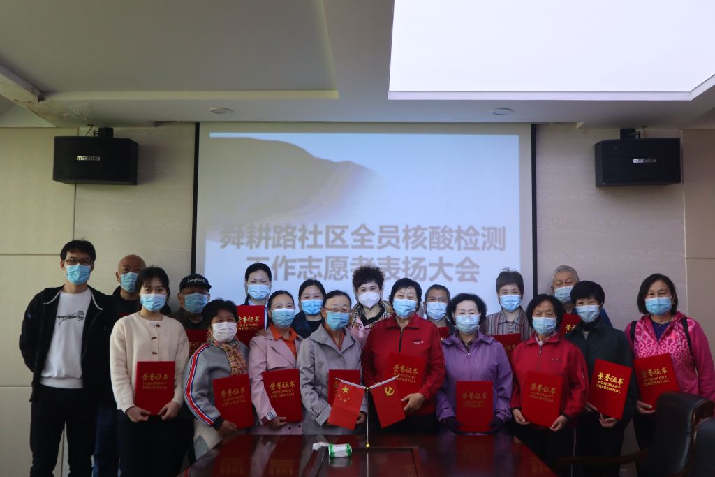 4月19日举行了舜耕路社区全员核酸检测工作志愿者表扬大会,共计为14名社区志愿者们颁发证书并邀请发言,阶段总结再出发,为社区治理蓄力,为疫情防控添瓦。