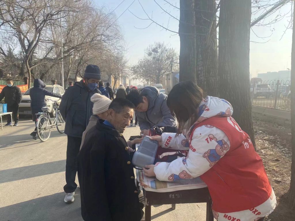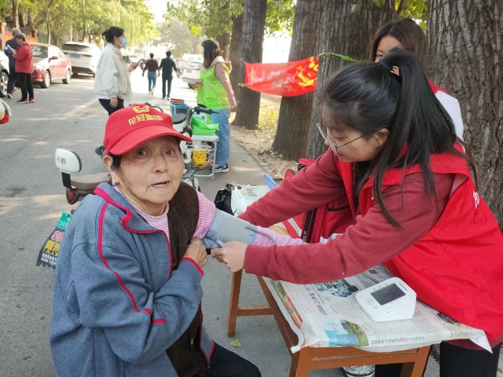 郭店街道社工站以郭店街道大集为出发点,将“推进五社联动,关爱一老一小”社会工作服务宗旨和“新时代文明实践志愿活动”相结合,建立了“社工站+志愿者”常态化联动服务模式,联动街道民生保障部门和社区,在公益集市上开展“政策宣讲”、“爱心义剪”、“1+1乐居服务包测血压血糖”、“困难问题收集”等志愿服务活动。