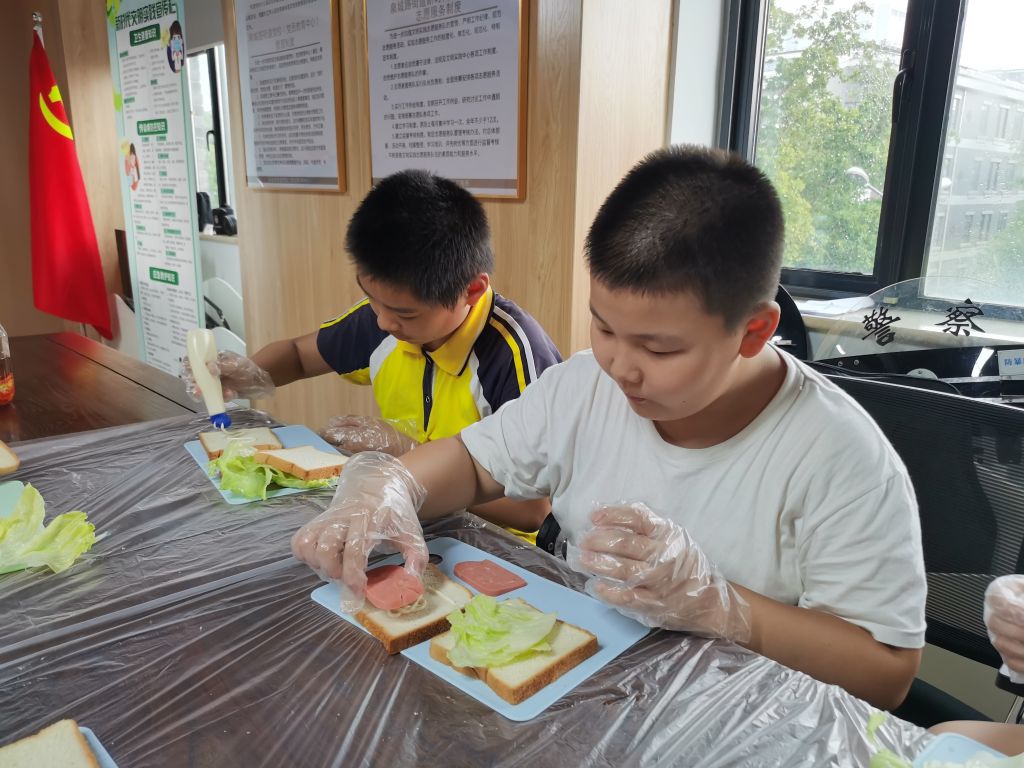 随后志愿者和工作人员给大家分发了手套、桌布、餐巾纸和食材等,让大家体验制作过程的同时也确保了卫生。看到美味的食材,小小厨师们早已迫不及待的想要大展身手啦!美食制作成功,小组成员们有的迫不及待的大口品尝自己亲手制作的三明治,有的向社工要来了塑料袋小心翼翼的包装好想要带回家给爸爸妈妈品尝,还有的小朋友们互相之间分享着美味。
