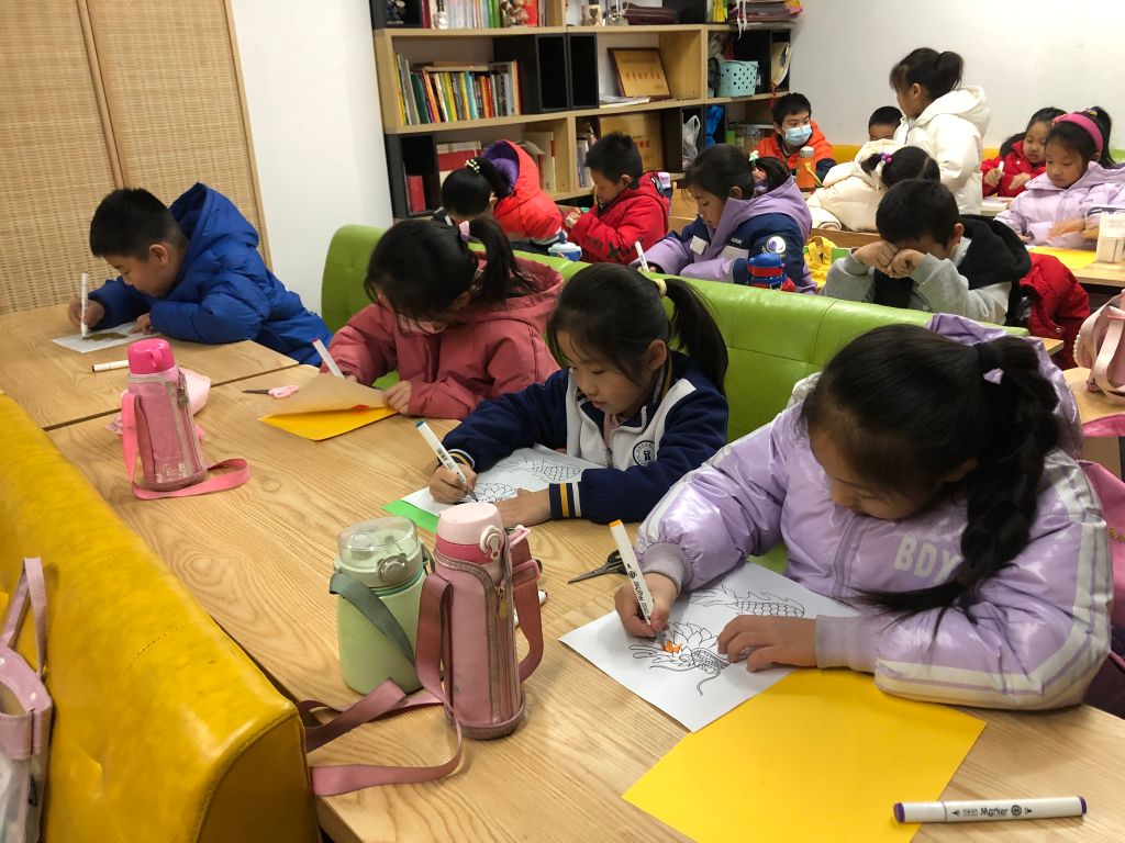 活动伊始,为了营造活跃的课堂气氛,社工带领孩子们进行简单的破冰小游戏。接着,向孩子们普及了有关龙的传说,对传统文化了解更加具象。之后,社工教孩子们怎样制作手工龙并详细讲解了制作方法,孩子们用自己的小巧手,一笔一画、认认真真地绘制龙头和龙尾,一张张普通的白纸,一下子变得活灵活现起来。龙身的制作更是独具匠心,孩子们发挥创造力和想象力,并用彩纸一圈绕着一圈,黄的、蓝色、绿的……一双双巧手将各式的舞龙栩栩如生地展现了出来。
