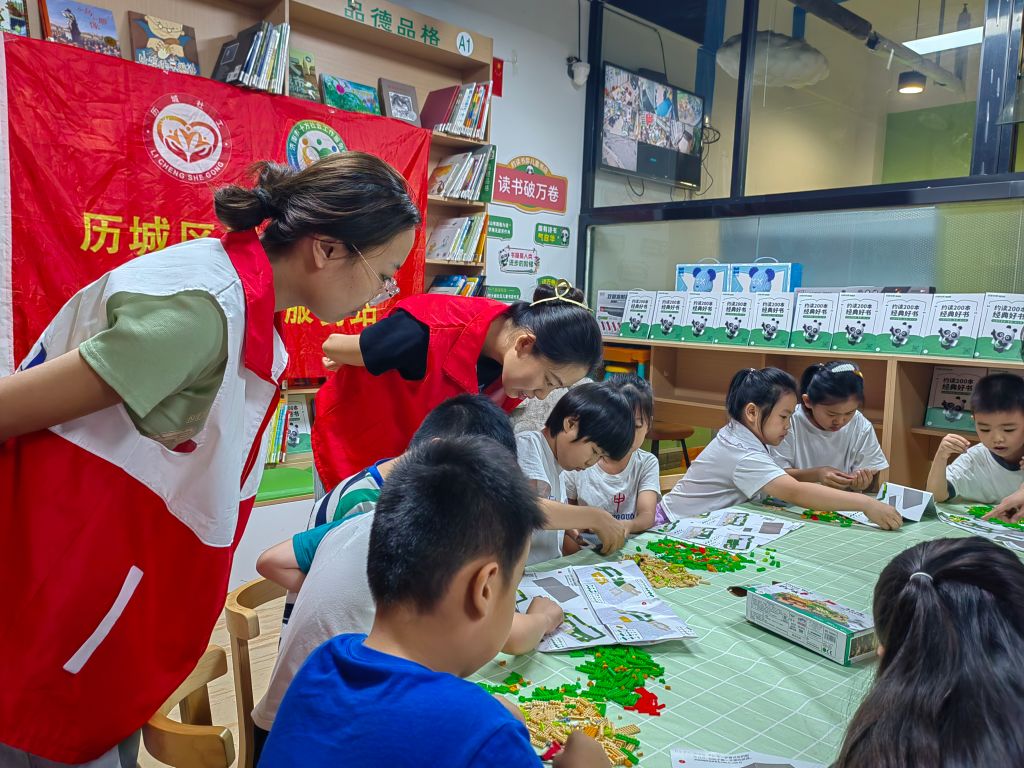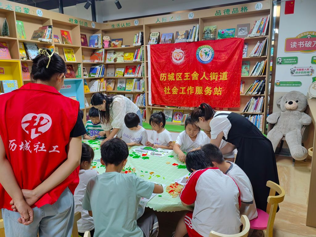 启迪智慧、探索创新乐高积木,给孩子一片创意的天空,为提高儿童人际交往能力,增强团队协作力、创造力和想象力,8月3日,王舍人街道社工站在恒大城西区约读书房儿童书店举办了”小手创世界 拼搭趣时光”儿童拼积木活动。