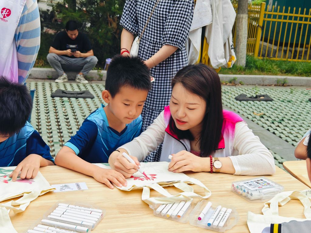 手绘帆布包,传递党恩与关爱 ——榆山街道社工站参与街道“五社联动”公益集市