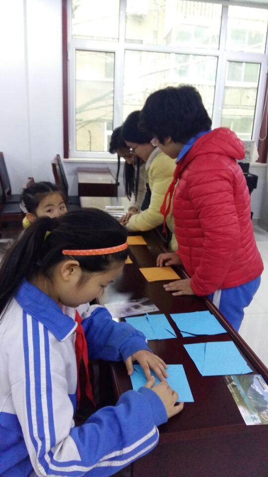 科普社工杜思思、徐倩、徐蕾首先带领孩子们做了两个热身小游戏。第一个游戏是“巧拼正方形”。8个孩子分成两组,每组由社工将一个大正方形剪成12块不规则图形,然后分成四份随机发给每个孩子,每个孩子要通过帮助同组其他孩子拼成一个完成的小正方形来完成自己手中的图形拼接,让孩子们学会了“赠与”而不是“索取”。第二个小游戏是猜物品。由其中一个孩子抽取一张纸条,描述纸条上所写的物品。但按照要求不能说出其中一些和该物品直接相关的字词,比如钢笔,不能说“墨水”和“写字”,钢琴不能说“弹奏”、“音符”等等,只能通过侧面描述来传递信息。