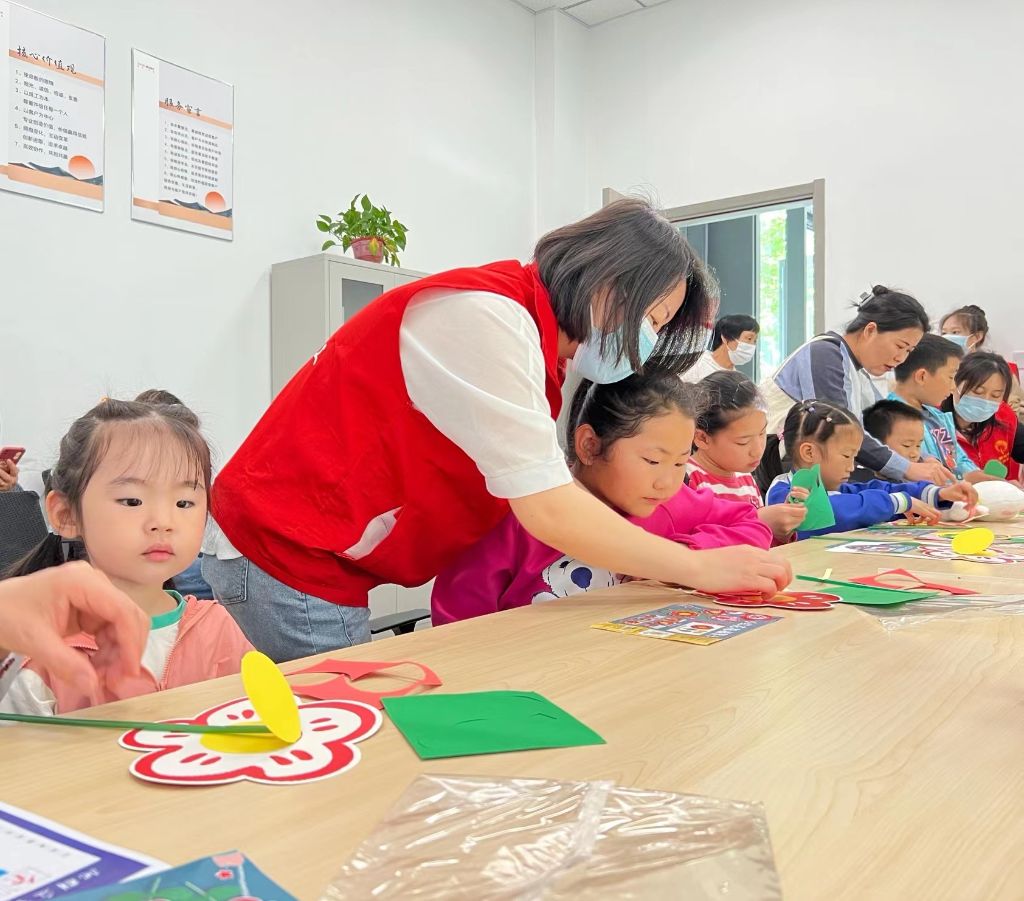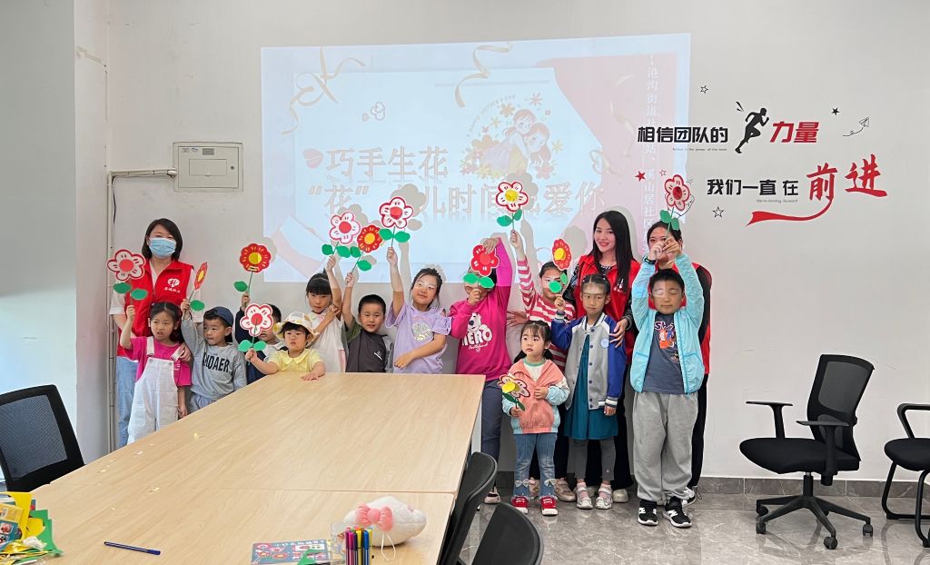 母爱是润物的细雨,母爱是醉人的春风。在母亲节来临之际,为弘扬中华民族传统美德,丰富社区儿童的精神文化生活。5月13日,港沟街道社工站在溪山居社区开展“巧手生花·‘花’点儿时间说爱你”主题活动,让指尖绽放美好,让爱意温暖社区。