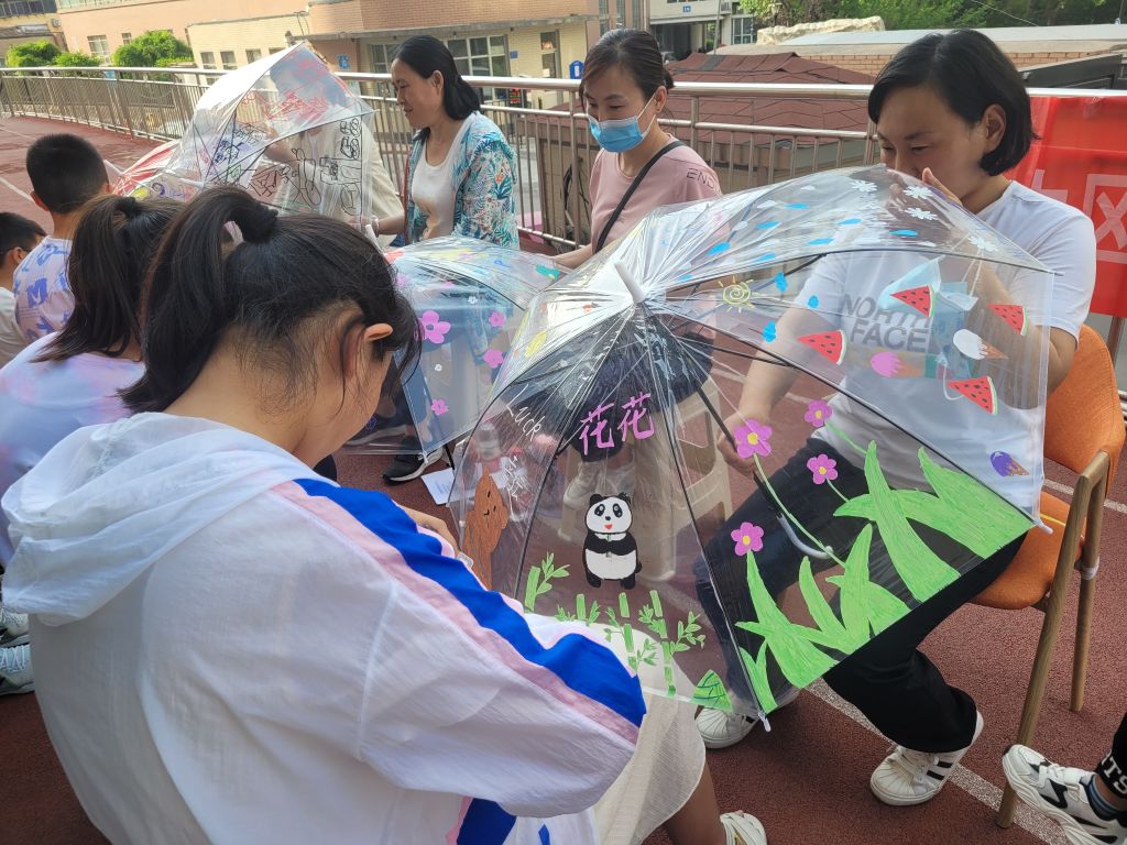 雨伞经过孩子们的调色、布局、勾线、上色……一步步地绘制出一幅幅好看的图画,有画地球、中国国旗、神州系列火箭,和谐号、宇航员的,也有画国宝熊猫、皮卡丘、星黛露、机器猫、小星星,笑脸的,还有画冰激凌、西瓜、花朵、月亮的,一把把精美的雨伞就诞生了。活动让孩子们体验动手实践的乐趣,同时激发了孩子们的艺术创造力,增强了亲子之间的感情交流。