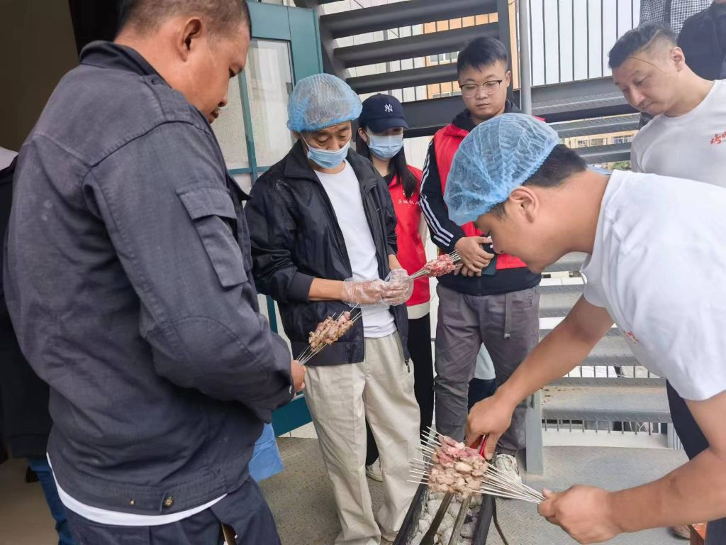 羊肉串穿好后就到了烤制的环节,师傅提醒残疾人朋友们烤羊肉串时不能放在明火上烤,烤出来的肉不仅不嫩,烤糊的地方还容易致癌,残疾人朋友们纷纷点头附和,自己动手烤的时候格外注意,烤好后,他们手里拿着自己亲手制作出来的羊肉串品尝了起来,并给社工说:“自己亲手穿好,又自己烤的,吃起来确实好吃。”最后残疾人朋友们对师傅的讲解表示感谢。