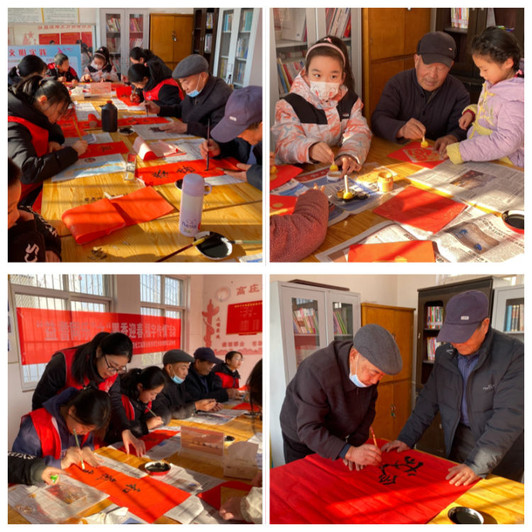 春天的脚步渐近,在这个充满祥和与喜庆的时节,高庄社工站链接新杏坛书法培训学校的学生志愿者及老年书法爱好者,在高庄村开展了一场别开生面的“墨香迎春,福字传情”活动,为老人们送上了温馨的祝福。